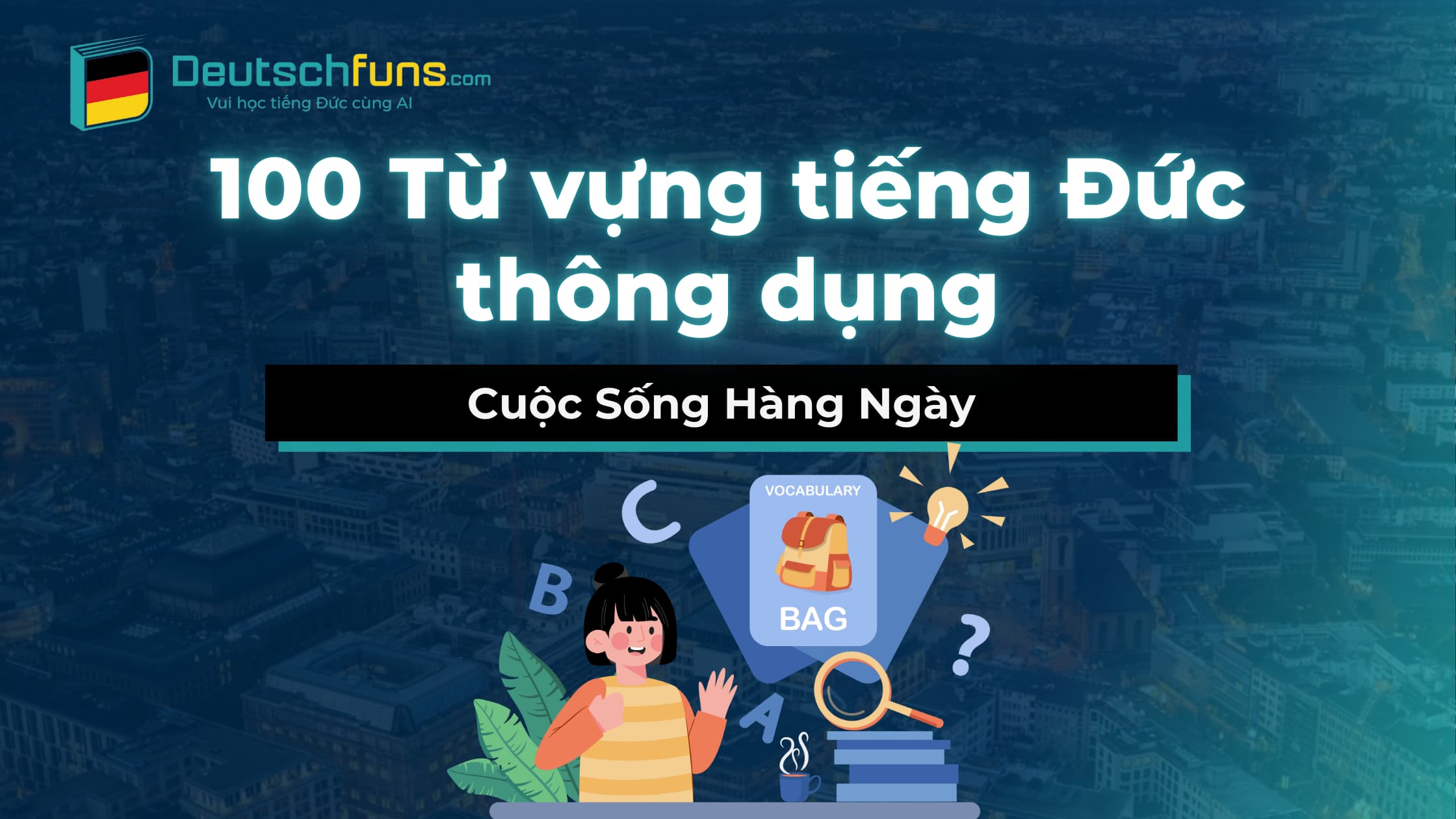 Trong bài viết này, Deutschfuns sẽ giới thiệu 100 từ vựng tiếng Đức thông dụng về cuộc sống hàng ngày, kèm theo phiên âm, loại từ và ví dụ minh họa. Đây là những từ vựng phổ biến nhất, giúp bạn ứng dụng vào giao tiếp ngay lập tức, từ chào hỏi cơ bản, miêu tả cảm xúc, đến diễn đạt các hành động thường gặp.
